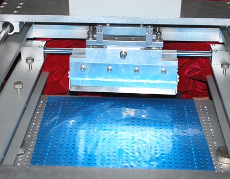 最大鋼板尺寸:350*450mm,模板框架寬度可調(diào),四點(diǎn)定位平面,保證PCB板和模板的水平度。