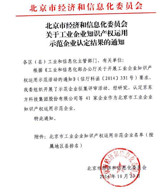根據(jù)《工業(yè)和信息化部辦公廳關(guān)于開展工業(yè)企業(yè)知識產(chǎn)權(quán)運(yùn)用示范活動的通知》(信廳科函[2014]31號)要求,北京市經(jīng)濟(jì)和信息化委員會組織開展了示范企業(yè)征集評審活動。經(jīng)過多輪評審,認(rèn)定北京41家企業(yè)為北京市工業(yè)企業(yè)知識產(chǎn)權(quán)運(yùn)用示范企業(yè)。