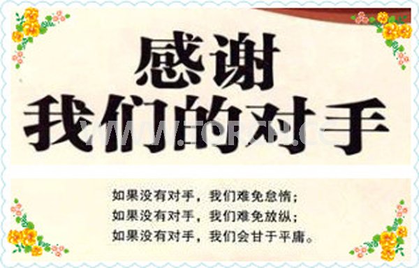 感恩對(duì)手,因?yàn)樘魬?zhàn),讓他們努力增強(qiáng)自己的實(shí)力,因?yàn)楦?jìng)爭(zhēng),使他們戰(zhàn)斗力十足,尋求不斷的創(chuàng)新,趕超對(duì)手的同時(shí),我們也在超越自己。感謝生命中那些對(duì)手,讓我們?cè)诟?jìng)爭(zhēng)中,不斷達(dá)到新的自己!