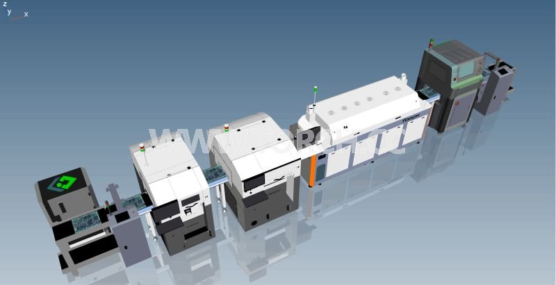 現(xiàn)場將演示在 MES控制下所有設(shè)備(自動(dòng)上料機(jī)→焊膏噴印機(jī)→智能貼片機(jī)→再流焊機(jī)→AOI→ICT→自動(dòng)組裝設(shè)備→自動(dòng)功能測試設(shè)備→自動(dòng)料倉)的協(xié)同工作以及3D仿真的虛擬工廠。