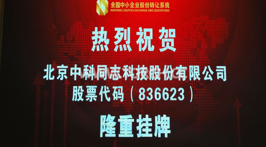 2016年5月4日,北京中科同志科技股份有限公司(以下簡(jiǎn)稱“同志科技”)掛牌儀式在北京金融街全國中小企業(yè)股份轉(zhuǎn)讓系統(tǒng)有限責(zé)任公司隆重舉行。同志科技成為中國一家以貼片機(jī)為主營業(yè)務(wù)的新三板掛牌公司。