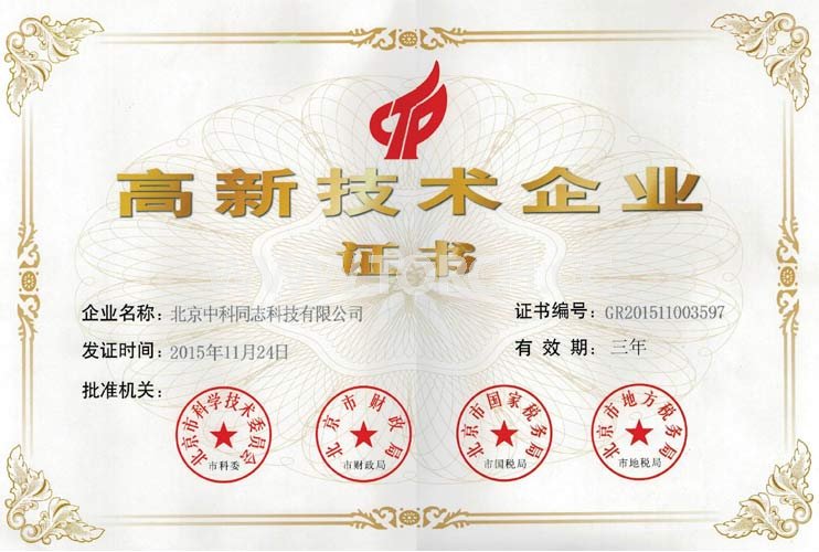 高新技術(shù)企業(yè)證書