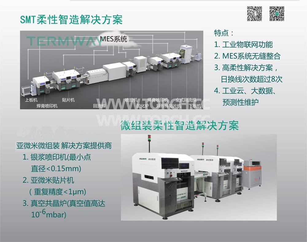 本次展會現(xiàn)場,聯(lián)盟本次的重點展示內(nèi)容為智慧工廠1.0建設(shè)中產(chǎn)品生命周期和企業(yè)價值鏈的集成效果,以實際系統(tǒng)集成的案例展示MES與ERP、SCM、CRM、CAPP集成,以及3D CPS模型。此次展會,泰姆瑞參展的設(shè)備有多功能貼片機(可貼裝標(biāo)準(zhǔn)件、異型件、手機屏蔽蓋等)T8和錫膏噴印機P8。
