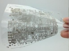 近日,蘇州納米所印刷電子研究部印刷電子工程中心科研人員與合作企業(yè)共同開發(fā)成功基于印刷電子技術(shù)制造原理的多層柔性印刷電路制備技術(shù)。圖片顯示了在PET基底上通過印刷制備的4層電腦主板電路,4層電路的總厚度小于0.1mm,印刷電路最小線寬0.1mm。該電路版具有很好的柔性、表面平整,層間電路有可靠的絕緣與導(dǎo)電連接。